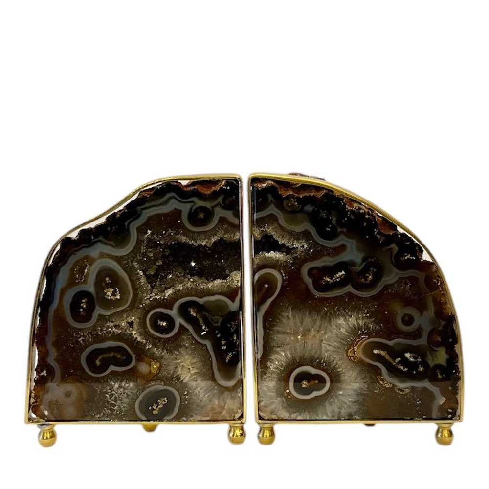 Organize seus livros com estilo. Feito em ágata na cor marrom e acabamento em latão polido, este aparador combina funcionalidade e design único. Ideal para dar um toque contemporâneo a escritórios, home offices ou salas de estar.