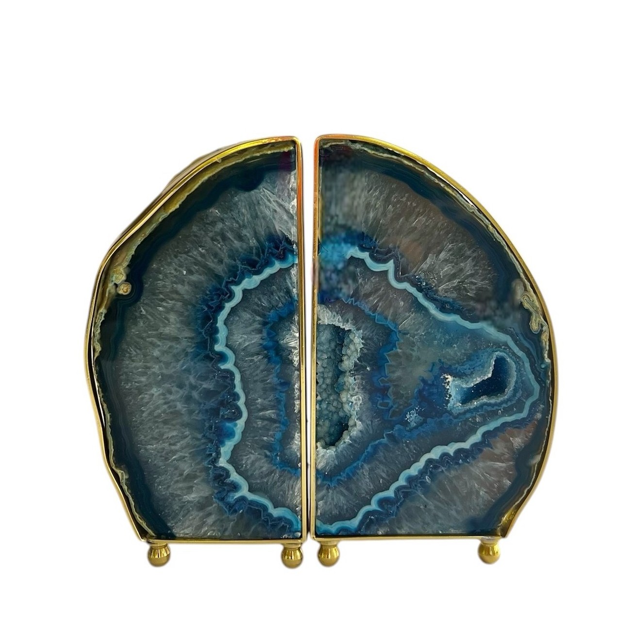 Organize seus livros com estilo. Feito em ágata na cor azul e acabamento em latão polido, este aparador combina funcionalidade e design único. Peça ideal para dar um toque contemporâneo a escritórios, home offices ou salas de estar.
