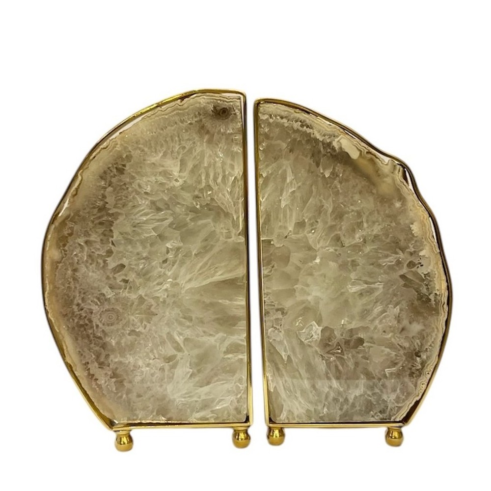 Organize seus livros com estilo. Feito em ágata na cor natural e acabamento em latão polido, este aparador combina funcionalidade e design único. Ideal para dar um toque contemporâneo a escritórios, home offices ou salas de estar.