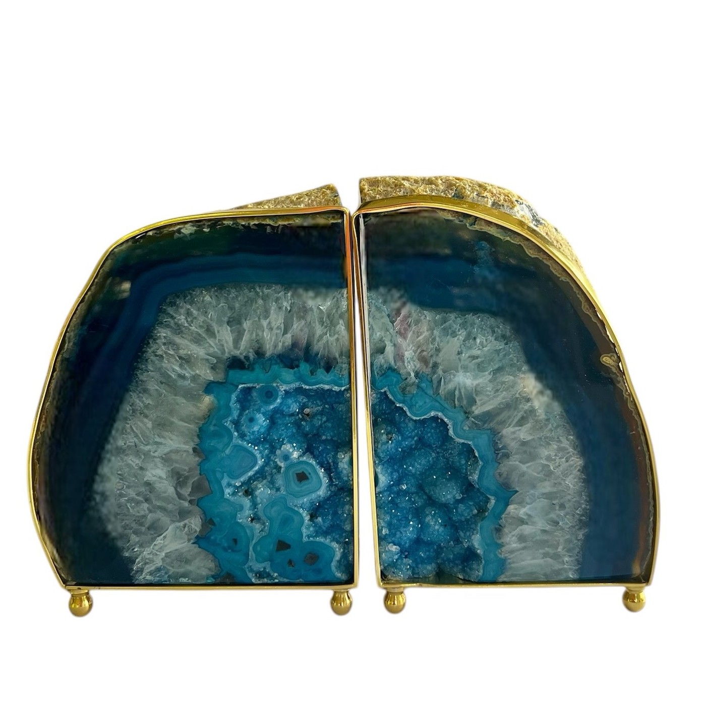 Organize seus livros com estilo. Feito em ágata na cor azul e acabamento em latão polido, este aparador combina funcionalidade e design único. Peça ideal para dar um toque contemporâneo a escritórios, home offices ou salas de estar.