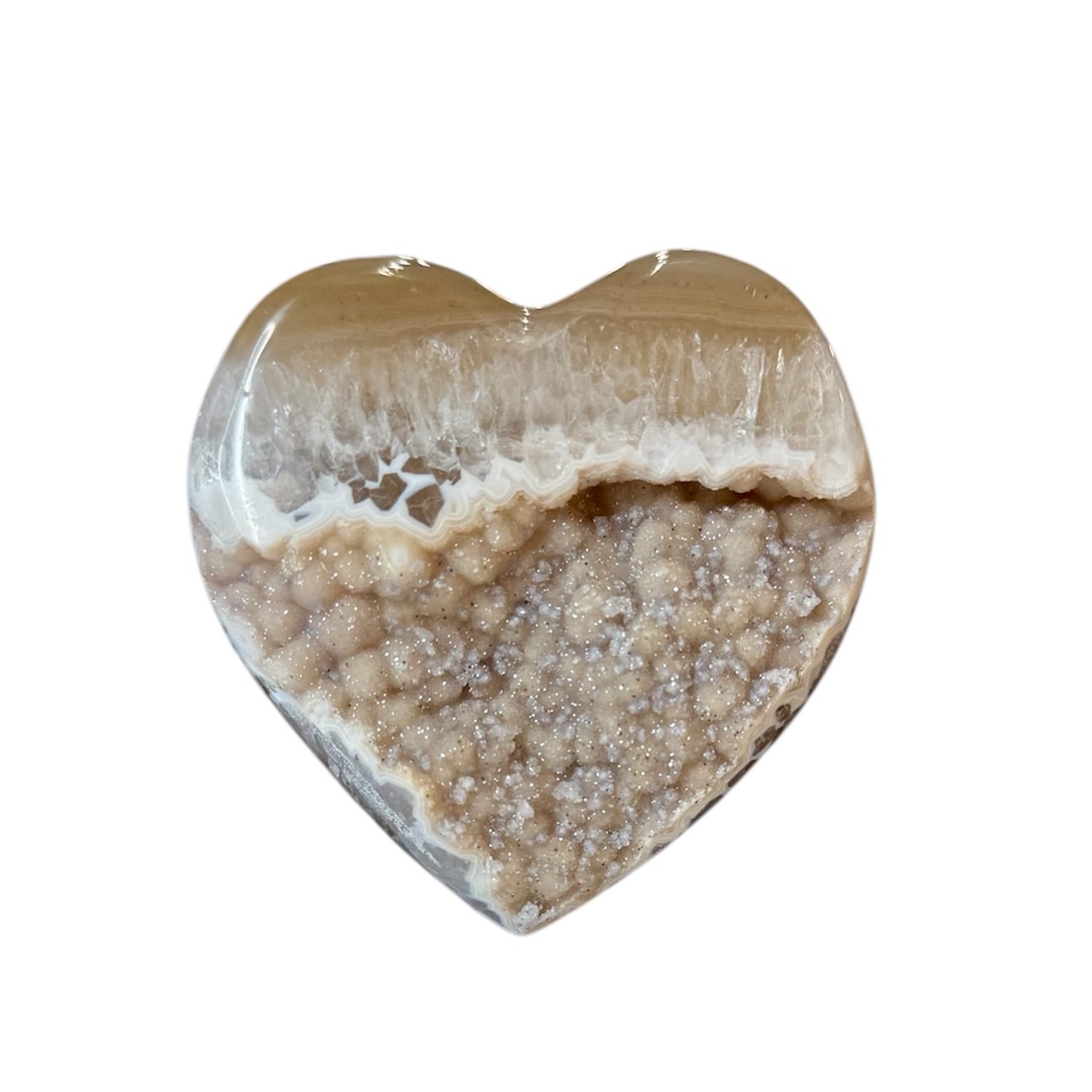 Peso de papel criado a partir de geodo de ágata polida em formato de coração. Pedra natural e polida de forma artesanal, pode conter variações na cor e formato.