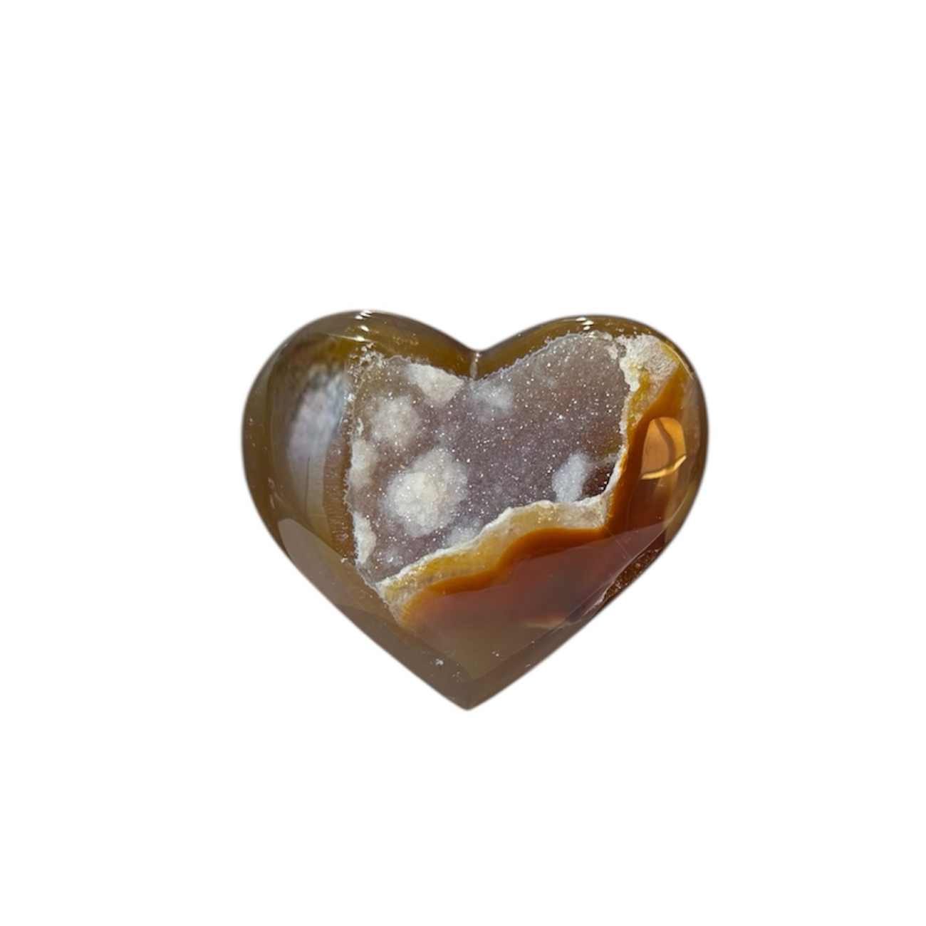 Peso de papel criado a partir de geodo de ágata polida em formato de coração. Pedra natural e polida de forma artesanal, pode conter variações na cor e formato.