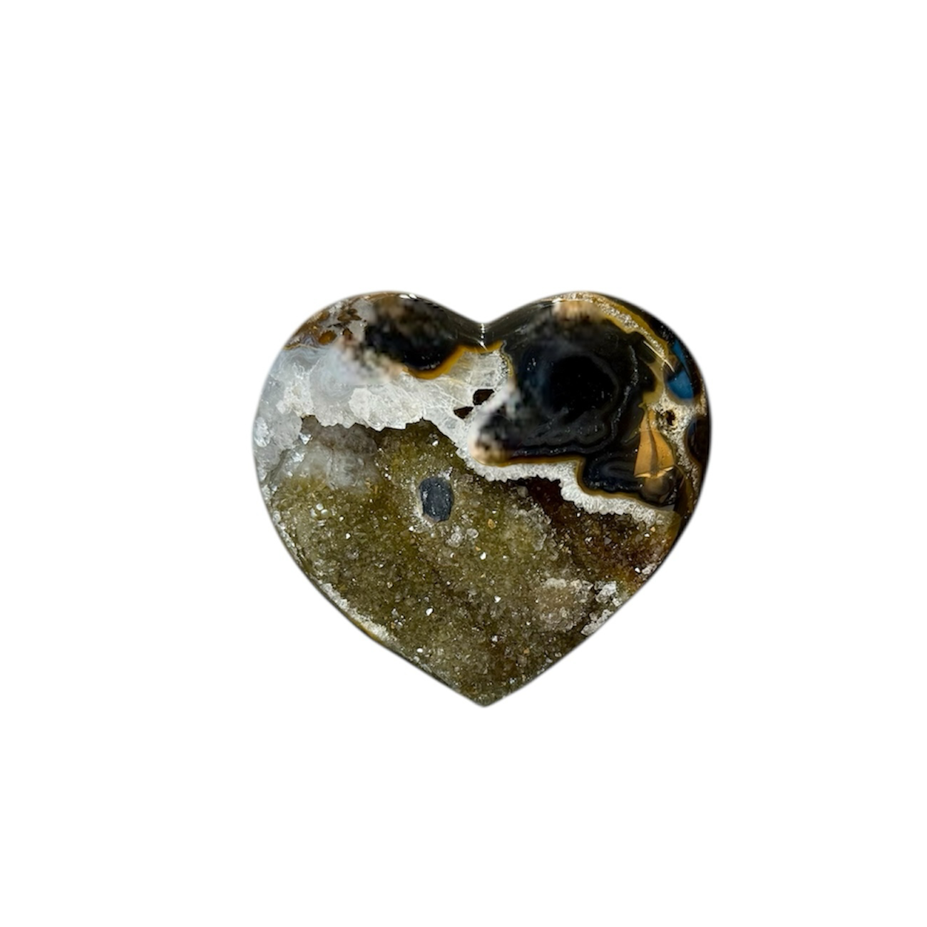 Peso de papel criado a partir de geodo de ágata polida em formato de coração. Pedra natural e polida de forma artesanal, pode conter variações na cor e formato.