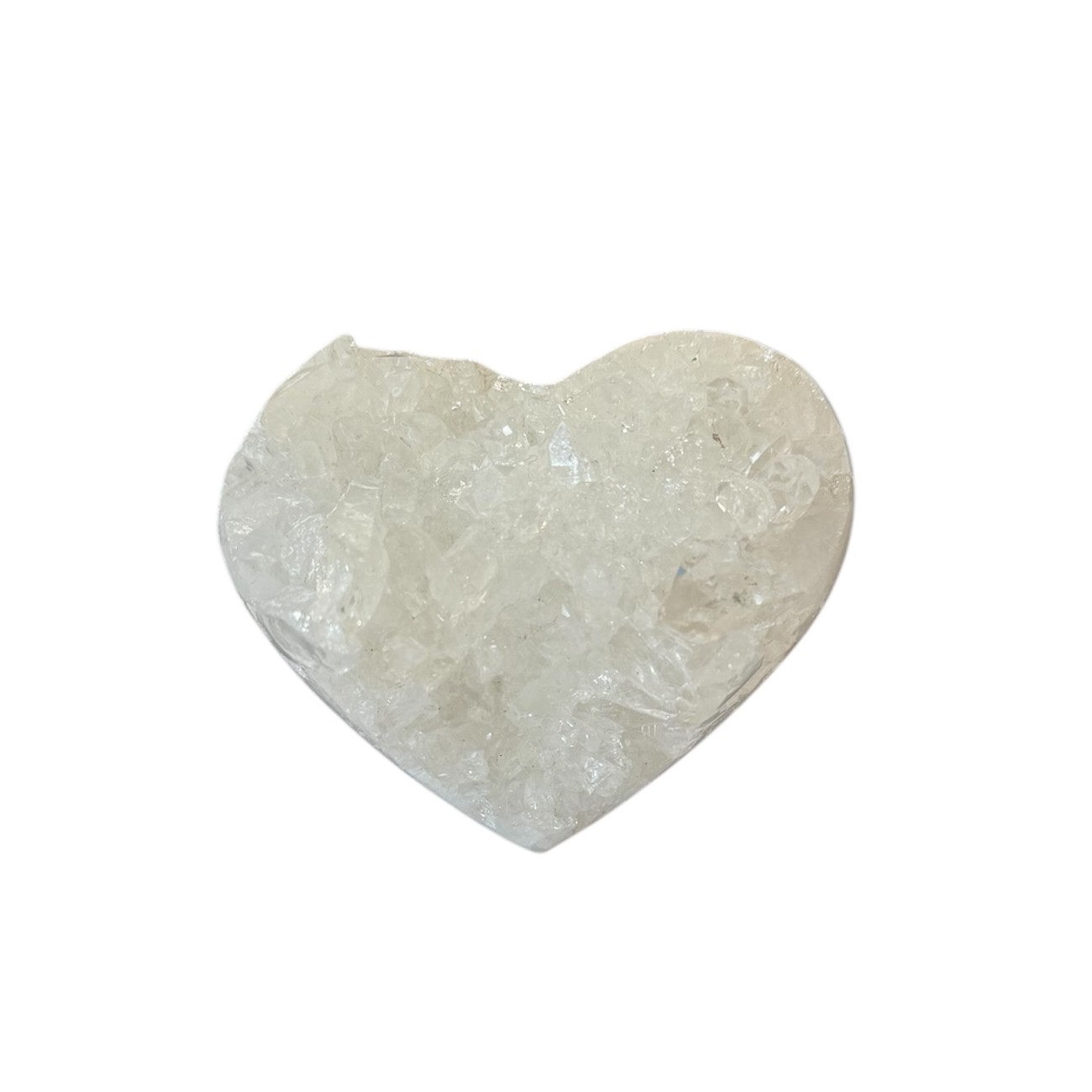 Peso de papel criado a partir de uma drusa de cristal polida em formato de coração. Pedra natural e polida de forma artesanal, pode conter variações na cor e formato.