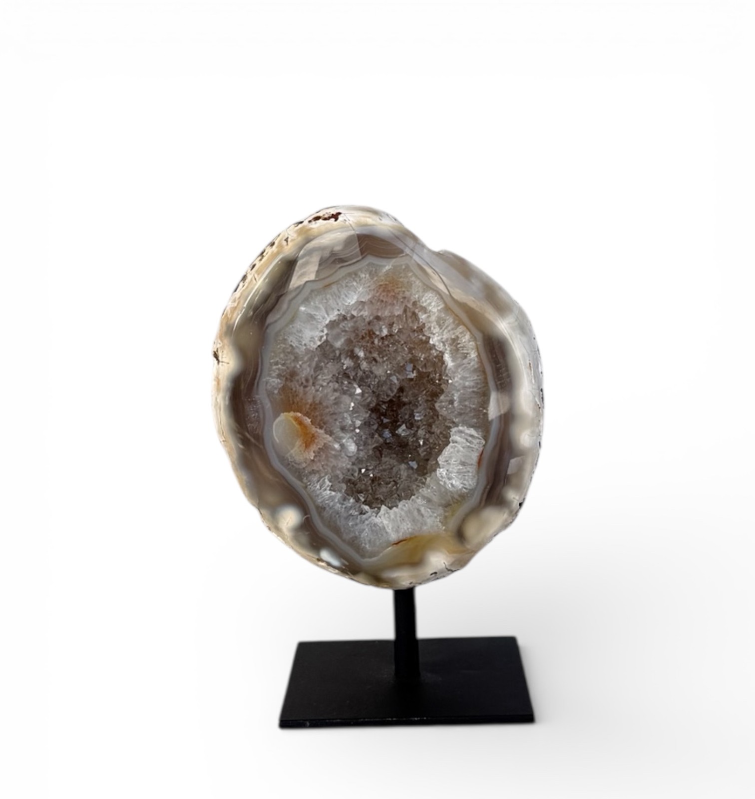 Associada ao equilíbrio e à proteção, a ágata é uma pedra que traz estabilidade ao espaço, ao mesmo tempo em que adiciona textura e profundidade visual.