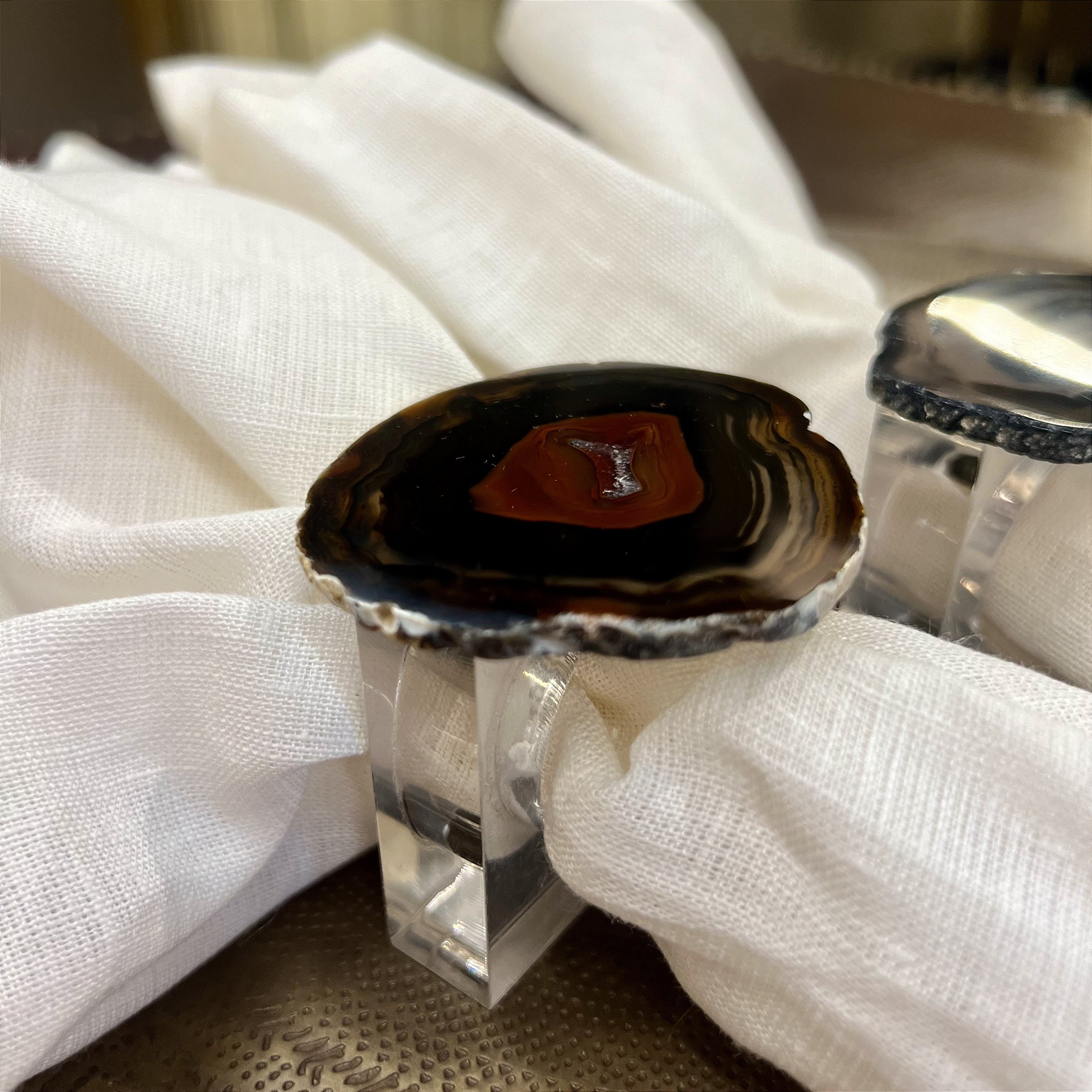 Porta guardanapo de acrilico com lâmina de ágata na cor preta. Peça produzida com matéria prima natural, pode conter variação de cor e formato. Valor unitário.